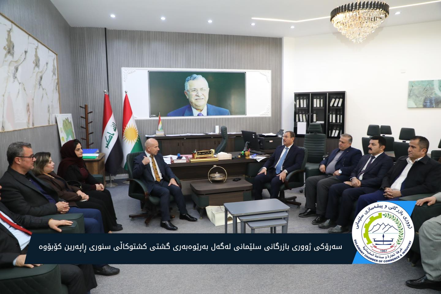 ڕێکەوتی ٢١/١٢/٢٠٢٥ نەوزاد غەفور،سەرۆکی ژووری بازرگانی و پیشەسازی سلێمانی، ئارام بابان،ئەندامی ئەنجومەنی کارگێڕی ژوور، لە دەڤەری ڕاپەرین لەگەڵ خالید ئەحمەد بەڕێوەبەەی گشتی کشتوکاڵ و ژمارەیەک بەڕێوەبەرانی فەرمانگە کشتوکاڵیەکان کۆبۆوە.
