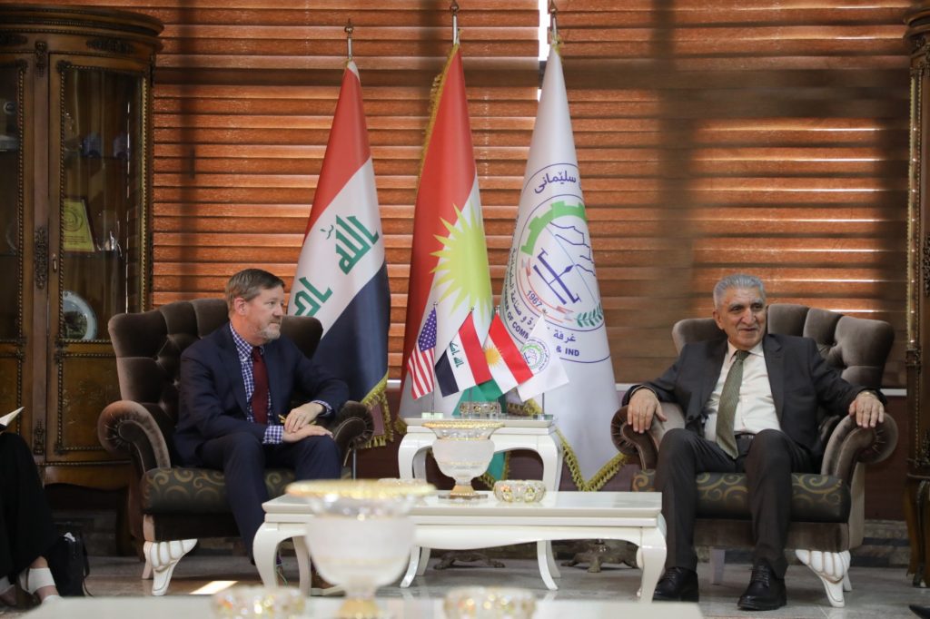 سیروان محەمەد، سەرۆکی ژووری بازرگانی و پیشەسازی سلێمانی و نەوزاد غەفور، جێگری سەرۆک و ژمارەیەک لە ئەندامانی ئەنجومەنی کارگێری ژوور و ژمارەیەک لە وەبەرھێنەرانی کەرتی کشتوکاڵ لە سنوری پارێزگای سلێمانی پێشوازیان کرد لە سەرۆکی ئەنجومەنی بازرگانی ئەمریکی – عێراقی و جێگری سەرۆکی کاروباری ڕۆژھەڵاتی ناوەڕاست ژووری بازرگانی ئەمریکی لەگەڵ شاندی یاوەریان.