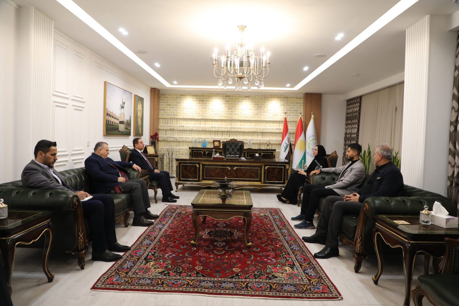 ڕێکەوتی 2025/12/9، نەوزاد غەفور، سەرۆکی ژووری بازرگانی و پیشەسازی سلێمانی پێشوازی کرد لە د.(هەیفا لەتیف جاسم)،بەڕێوەبەری پەیوەندییە نێودەوڵەتییەکان و وەبەرهێنان لە کۆمپانیاکانی فەیسەڵ شەهین ئەلحەمەدی لە ئیماراتی یەکگرتووی عەرەبی و بەڕێوەبەری جێبەجێکاری پێشانگا و کۆنفرانسەکانی سەقر شاهین و عتا ئەنوەر، خاوەنی کۆمپانیای ئاسمان.