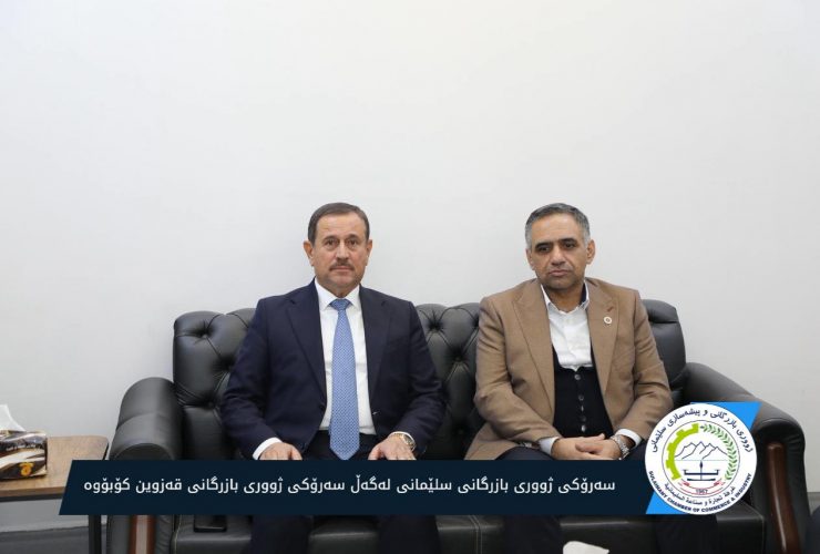 ڕێکەوتی 2025/12/21 نەوزاد غەفور، سەرۆکی ژووری بازرگانی و پیشەسازی سلێمانی،ئارام بابان، ئەندامی ئەنجوومەنی کارگێری ژوور، لەگەڵ مەهدی عبدیانی، سەرۆکی ژووری بازرگانی قەزوین کۆبۆوە. لەکۆبونەوەکەدا جەخت لەسەر بەهێزکردنی بازرگانی و پیشەسازی و پەیوەندییەکان کرایەوە تا بتوانرێت هەردوولا پێکەوە کاربکەن لە بەرەو ...