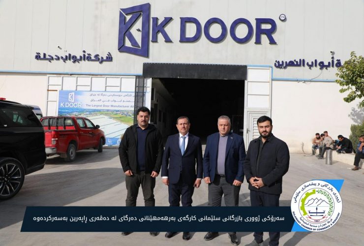 ڕێکەوتی 2025/12/21 نەوزاد غەفور،سەرۆکی ژووری بازرگانی و پیشەسازی سلێمانی، ئارام بابان، ئەندامی ئەنجوومەنی کارگێڕی ژوور، لە دەڤەری ڕانیە کارگەی بەرهەم هێنانی دەرگای کەی دۆریان بەسەر کردەوە. ئامانج لەسەردانەکەی سەرۆکی ژووری بازرگانی و پیشەسازی سلێمانی، بۆ لەنزیکەوە ئاگاداربون بوو لە بەرەو ...